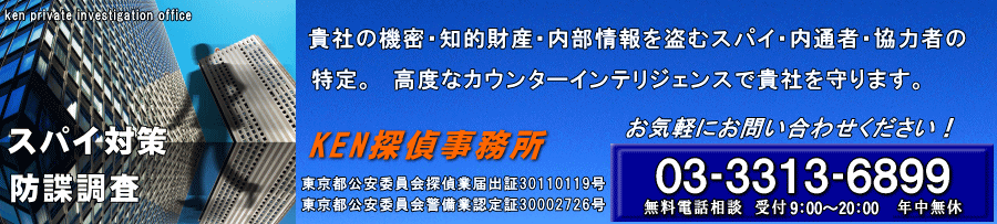 スパイの手口に精通した、KEN探偵事務所のカウンターインテリジェンスサービス。
